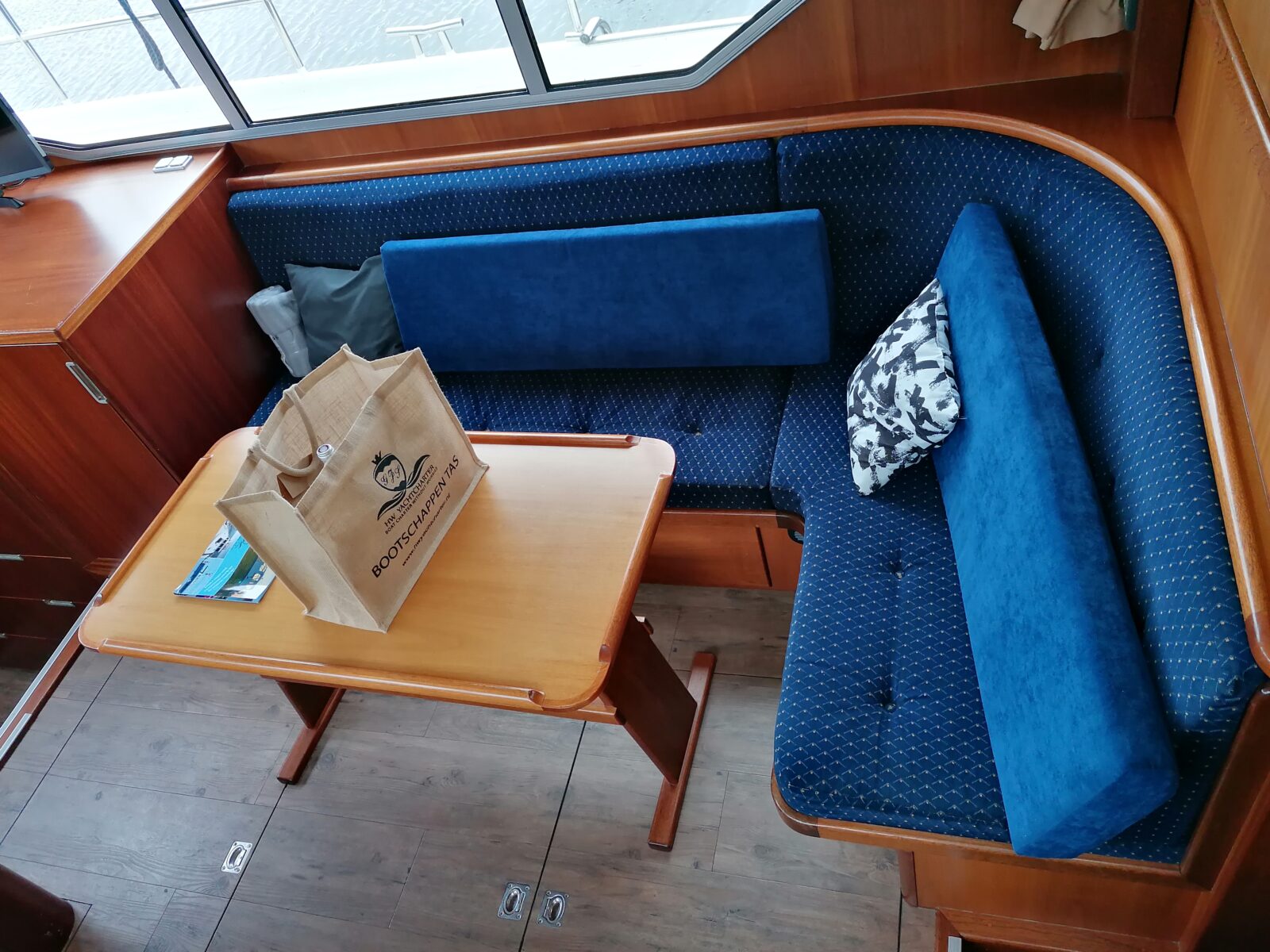 De keuken is na de refit op gelijke hoogte met de salon gebracht, deze is uitgerust met een combi-oven, vaatwasser en twee koelkasten. De dinette is een fijne en ruime zithoek welke ook tot 2-persoonsbed kan worden omgebouwd.